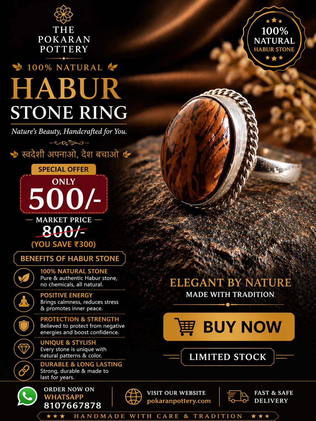 A bold handcrafted ring featuring authentic Habur Stone, designed to make a strong yet elegant statement. Its rich natural texture adds a premium and unique touch to your personality.