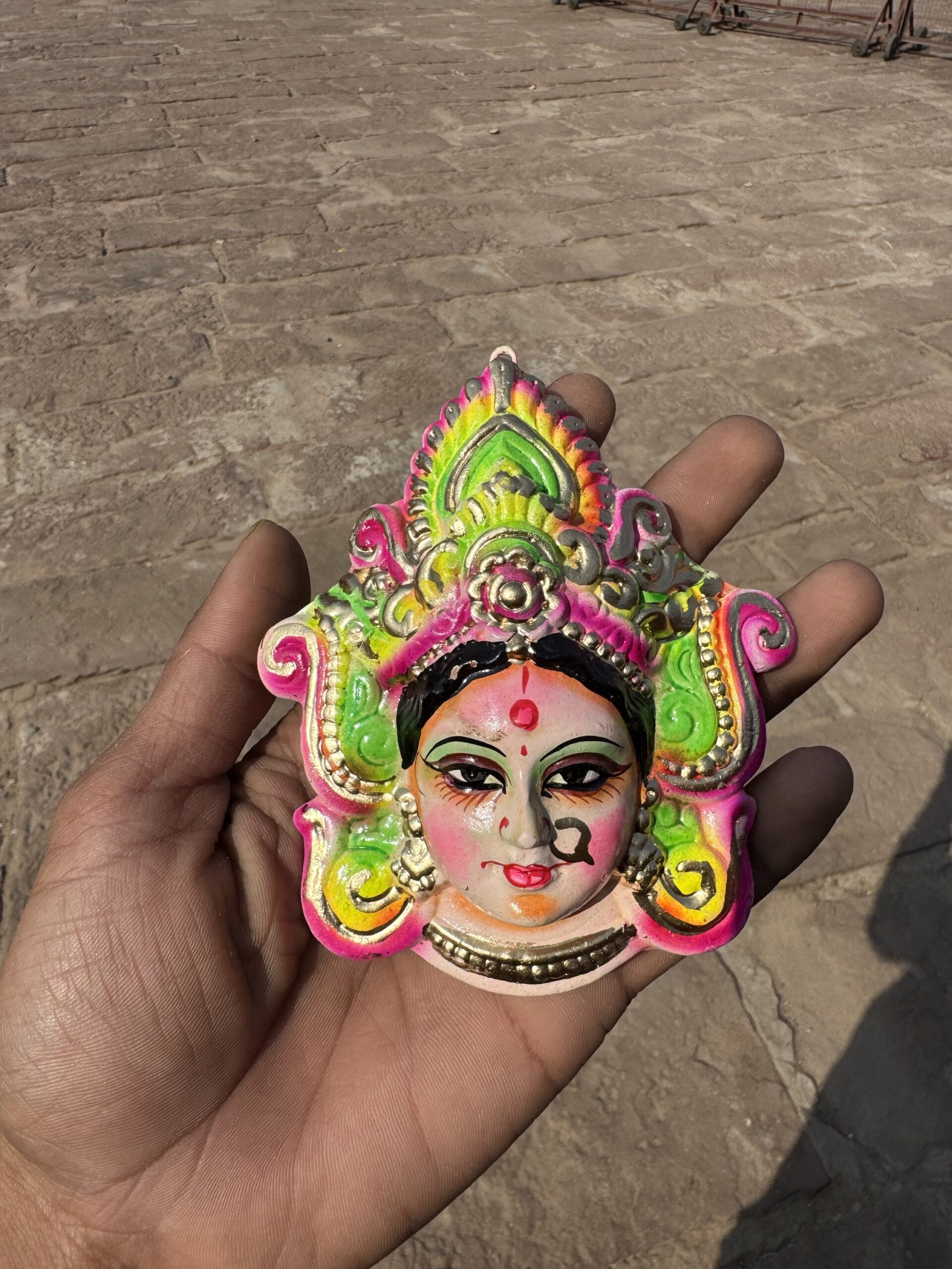 Each Durga face is completely handmade by skilled artisans, showcasing fine detailing and smooth finishing that highlight the beauty of traditional clay art. The artistic design and expressive features make it a perfect decorative and spiritual element for homes, temples, meditation rooms, or sacred spaces.