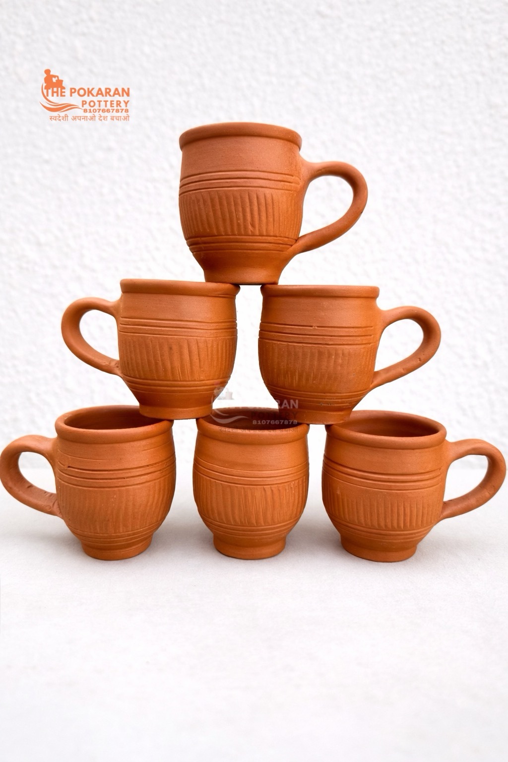 Natural Clay Tea Cup Set (Set of 6) KULLHAD – by The Pokaran Pottery
